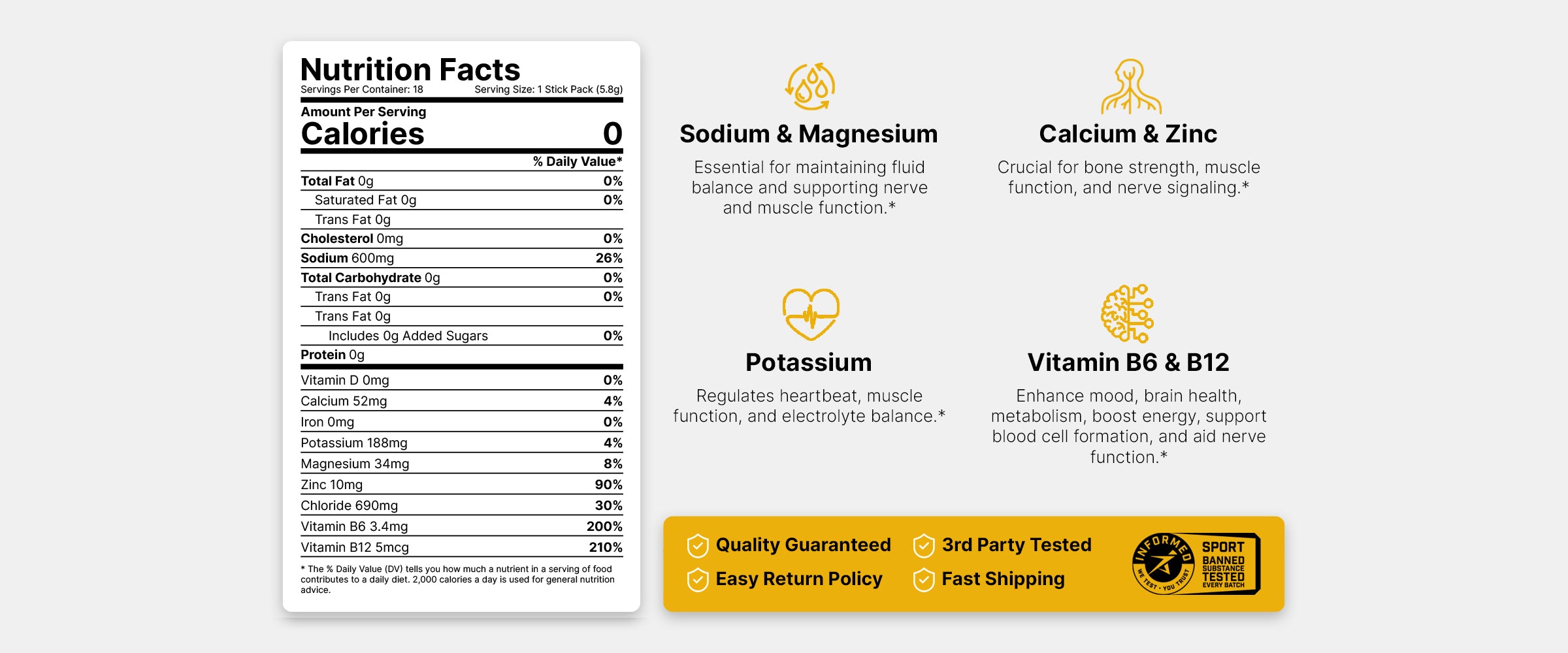 "This is a game-changing hydration powder for athletes, delivering clean, 3rd party-tested electrolytes that keep you fueled, cramp-free, and performing at your peak. With fast absorption and no unnecessary additives, it’s the perfect choice for anyone serious about endurance, recovery, and optimal hydration."